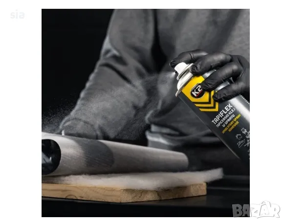 K2 TAPIFLEX е професионален, силно свързващ спрей за лепило за тапицерия. Разработен на базата на висококачествени суровини. Свързва съединени повърхности с изключителна скорост и висока якост на залепване. Има висока ефективност и е напълно устойчив на влага. Осигурява здрава, изключително гъвкава връзка, която не се разгражда с времето. Устойчив е на стареене.