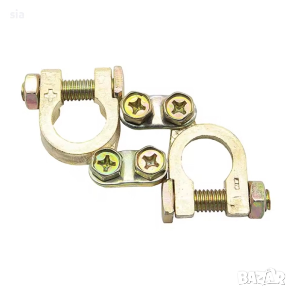 Здрави и надеждни клеми за акумулатор, предназначени за сигурно свързване на кабелите към акумулаторните изводи. Изработени от висококачествен материал с добра проводимост и устойчивост на корозия. Подходящи за автомобили, камиони и други превозни средства.