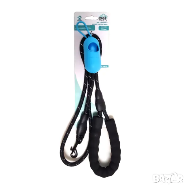 Повод за куче с подарък държач за хигиенни торбички с една ролка торбички.