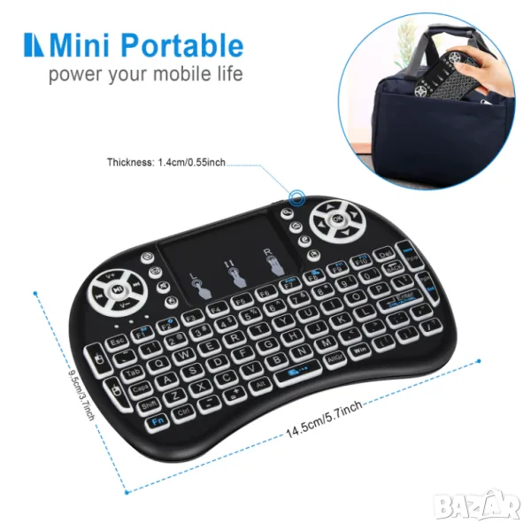 Мини безжична клавиатура с тъчпад, 3-цветно осветление, за Smart TV Android, Компютър