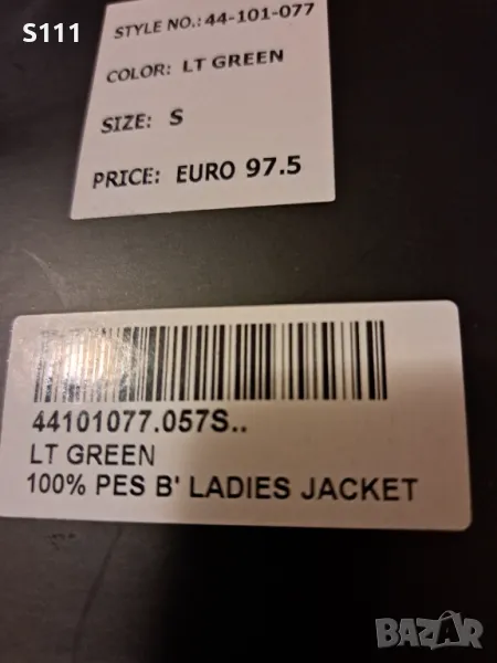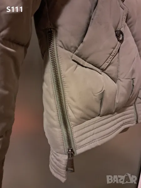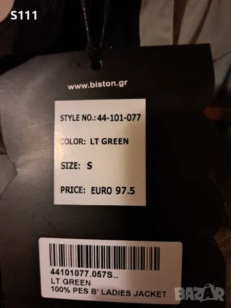 Прекрасно и много стилно дамско зимно яке на BISTON Fashion - внос от Гърция. Супер качество на материали и изработка. Актуален бледо зелен цвят, който може да се комбинира с почти всички други цветове. Линията е разчупена, отзад е малко по-дълго. Има два джоба отстрани и два декоративни ципа. Отпред се закопчава с цип. По етикет е размер S, но е уголемено и отговаря на М, може да се носи дори от дами с размер L. Мерки на якето едностранно: ширина под мишница - 52 см, ширина от рамо до рамо - 53 см (моделът е с леко паднало рамо); дължина на чкето отпред - 59 см, дължина отзад - 64 см., дължина на ръкав - 58 см. Оригиналната му цена е 97.50 Евро (около 190 лева).