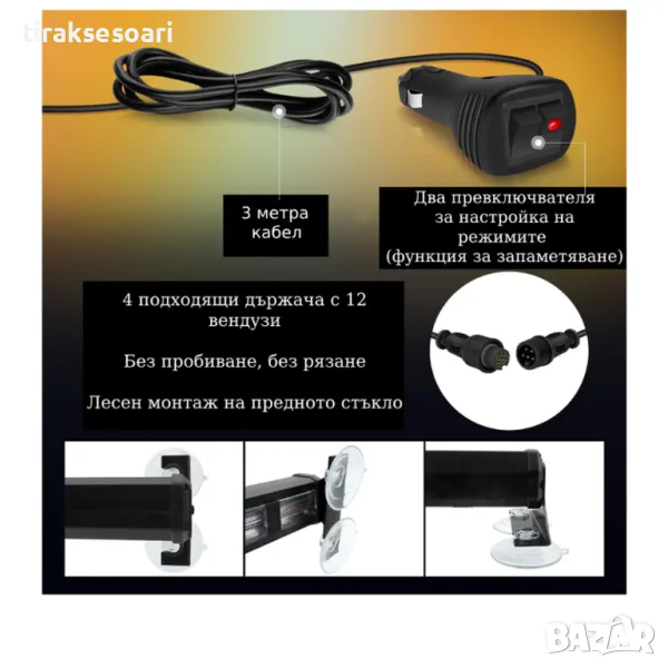 2 Броя 44 см Аварийни лампи маяк сигнални лампи за предно стъкло