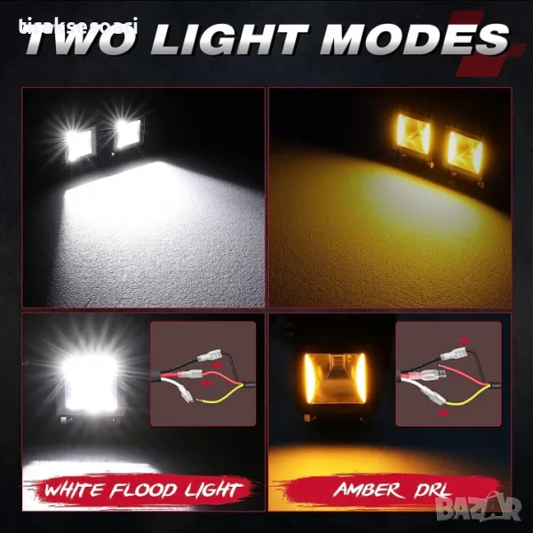 LED Халогени Лампи с окабеляване Бяла Flood + Оранжева DRL Светлина 12-24V за Off Road джип мотор автомобил камион градина и др.