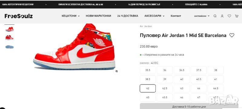 Nike Air Jordan 1 Mid SE 'Barcelona Sweater' номер 42 оригинални маратонки