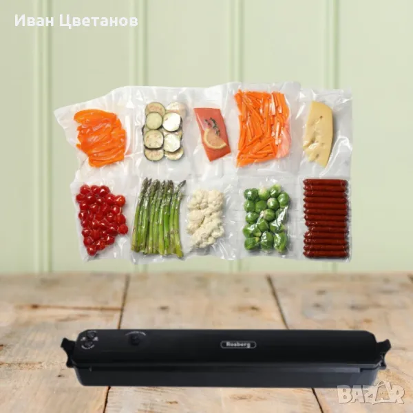 Вакуум машинка Rosberg R51987F oграничава храната от достъп с кислород и предпазва от загуба на вода, предотвратявайки разваляне на съставките.