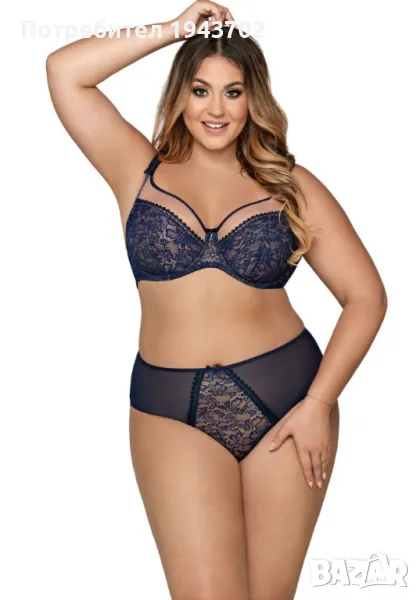 Дамски тъмносини бикини изработени от микрофибър и флорална дантела.