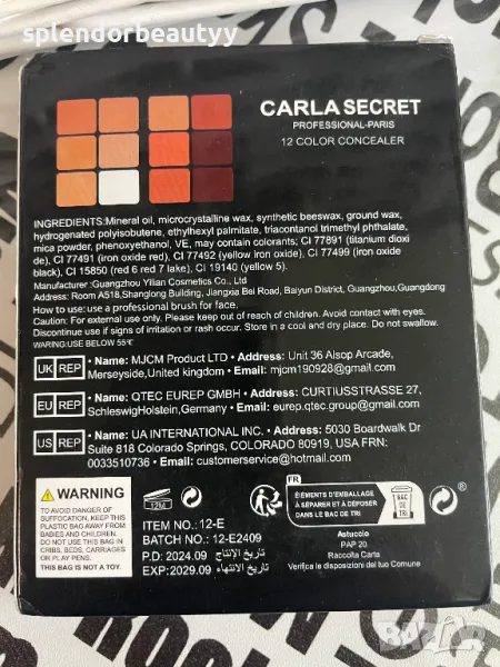 Тази палитра от 12 цвята коректори, мека текстура, лесна за нанасяне. Не само може да прикрие петна, тъмна тежка кожа, обемисти пори и недостатъци, но може да се използва и като контур и подчертаване. Освежаващ, овлажняващ, подхранващ, пълно покритие, оставя кожата свежа, дишаща и естествена.
