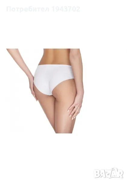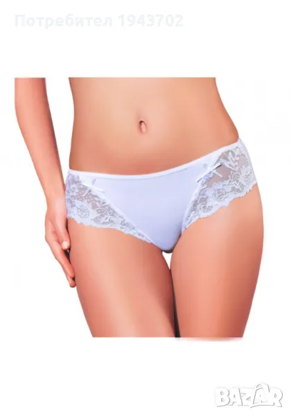 Дамски бикини в бял цвят. Предната част е украсена с дантела, а задната е гладка.