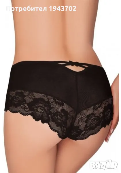 Бикини в черен цвят. Изработени от мек микрофибър и деликатна, полупрозрачна, тюлова мрежа, в долната част е с красива дантела.