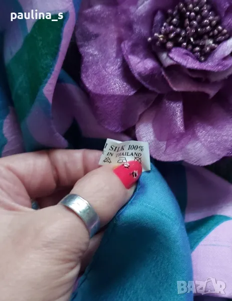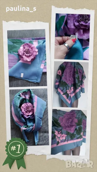 1️⃣ . Колаж - Разкошен копринен шал, ръчна изработка, от 100% пясъчна коприна във пъстър флорален принт, от времето на соц-а, съхраняван и стопанисван с грижа, като нов.