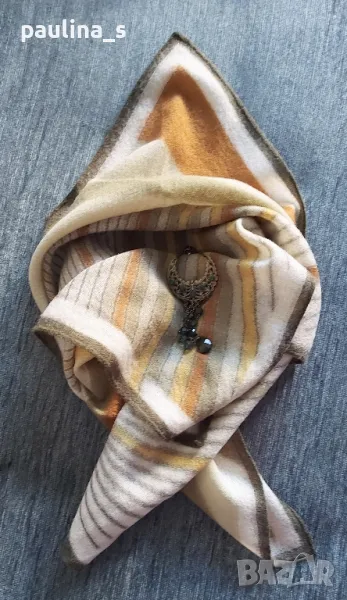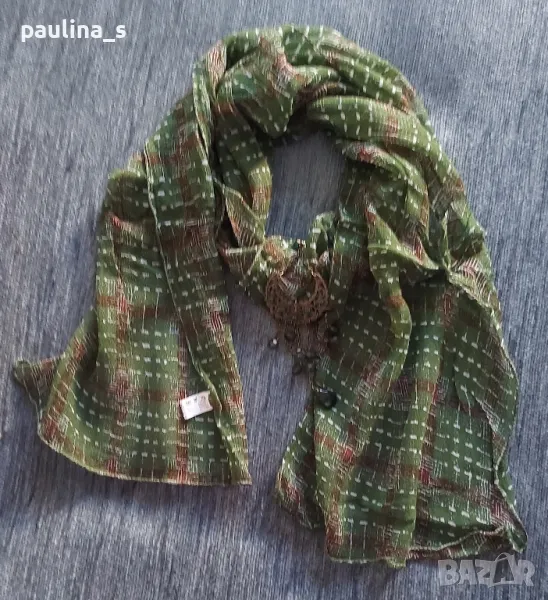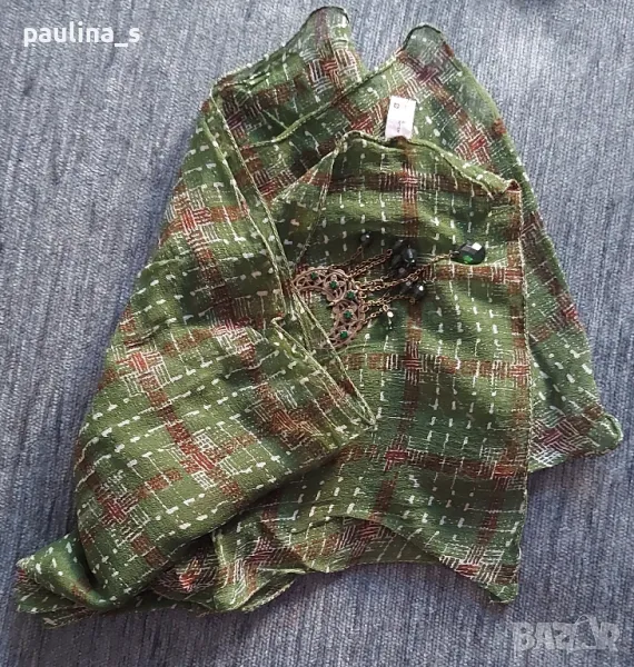 4️⃣. Колаж - Индийски паяжинен шал в зелено кафявата гама - цена 19,99лв / 10 евро. Обецата за декорация е моя хрумка, може да се носи като брошка. Ръчно изработен, много фина материя - вискозна коприна, прозрачен е, като нов. 156см / 30см
