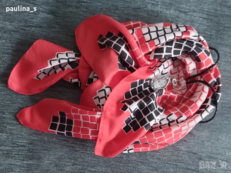 2️⃣ . Колаж - Разкошен италиански шал, 100% пясъчна коприна, ръчна изработка, в червено черен и бял змийски принт, като нов - цена 59,99лв / 30 евро