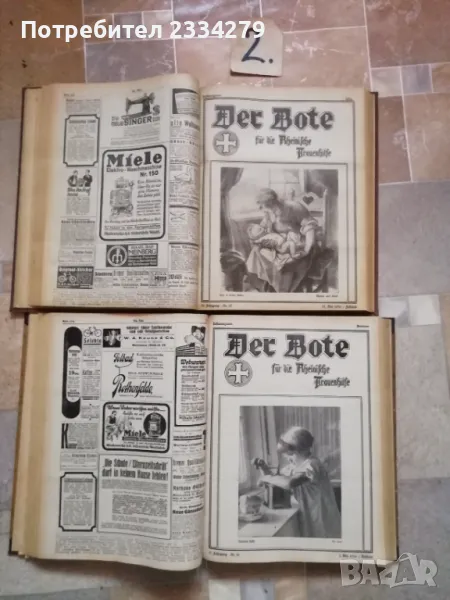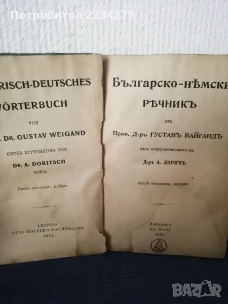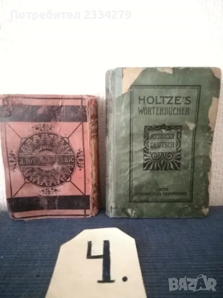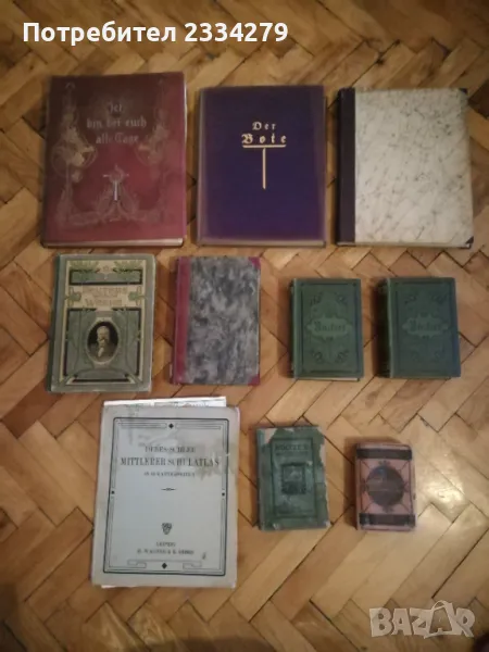 Стари 100% автентични N:1 стара църковна книга от 1905 год., цена 10лв.; N:2 стари немски журнали с реклами, мода, рецепти и друга информация за бита от 1935-36 год.,цена за брой 15лв.; N:3 от различни автори и години 1866год., 1882год.,1907год. стари немски книги, цена 10лв. брой; N:4 стари речници: БЪЛГАРО-НЕМСКИ от 1918год. цена 25лв.; ЧЕСКО - НЕМСКИ речник от 1928год.,цена 25лв.;