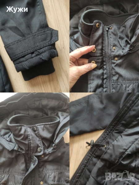 ДАМСКО черно дамско яке, размер М, без забележки, закопчаването е с цип и капси , в кръста ширината може да се регулира, цена 10,90 лв.