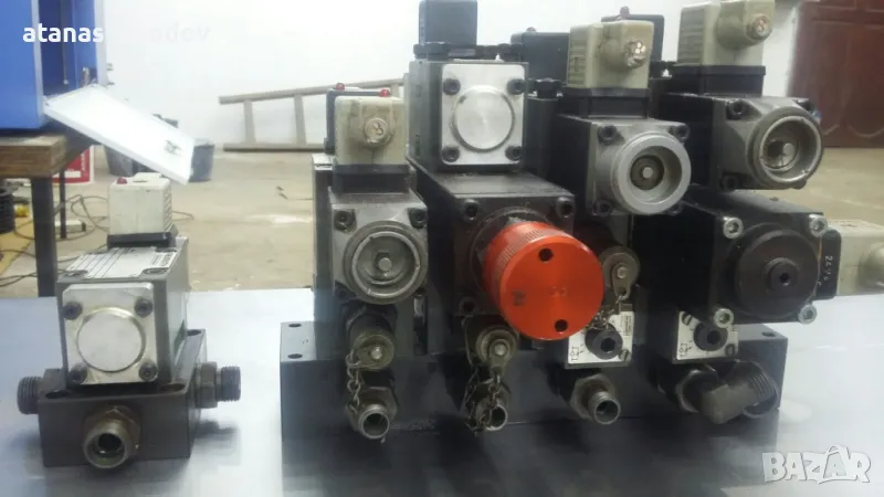 много прецизен хидравличен блок REXROTH с 4 разпределителя + един отделно.Бобини 24v