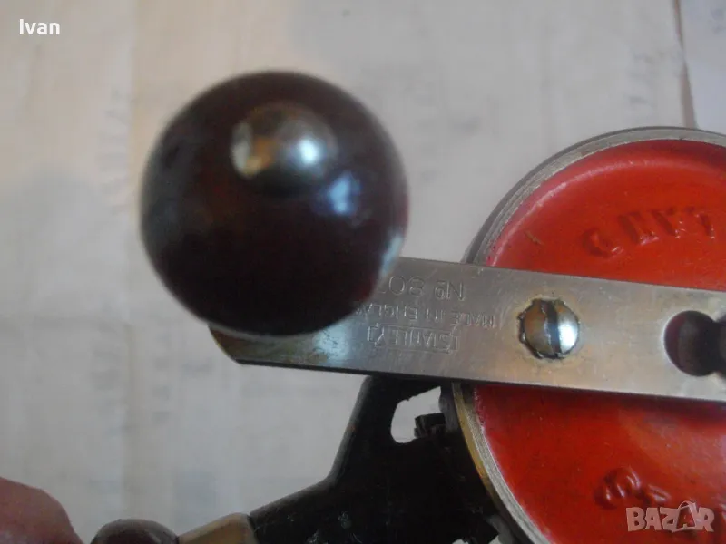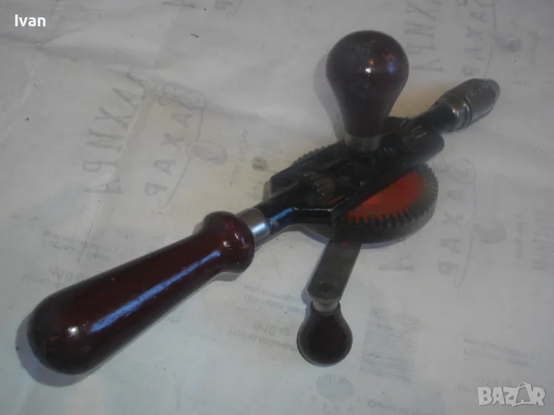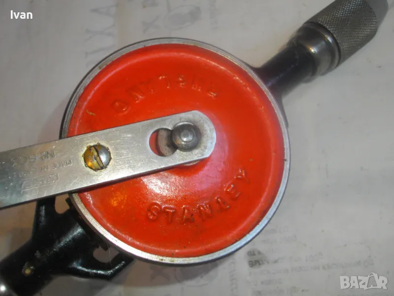 ОПИСАНИЕ на ръчна дрелка - маткап. Цена 99 лв. Английски оригинален марков инструмент. Марка/модел - STANLEY ENGLAND - Made in England № 803. Почти нов/като нов/трудно различим от нов. Колекционерски антикварен. Отлично техническо работно състояние. Много запазен външен вид, без охлузвания по оригиналната боя. Цялостна дължина 325 мм. Патронник - с хром покритие - захват до 8 мм опашка на свредло. Дървено покритие на дръжките. Оригинална къса странична дръжка. Цената от 99 лв е твърда и не подлежи на коментар за този инструмент.