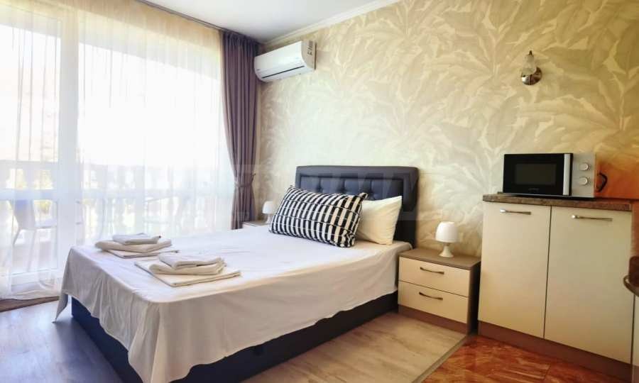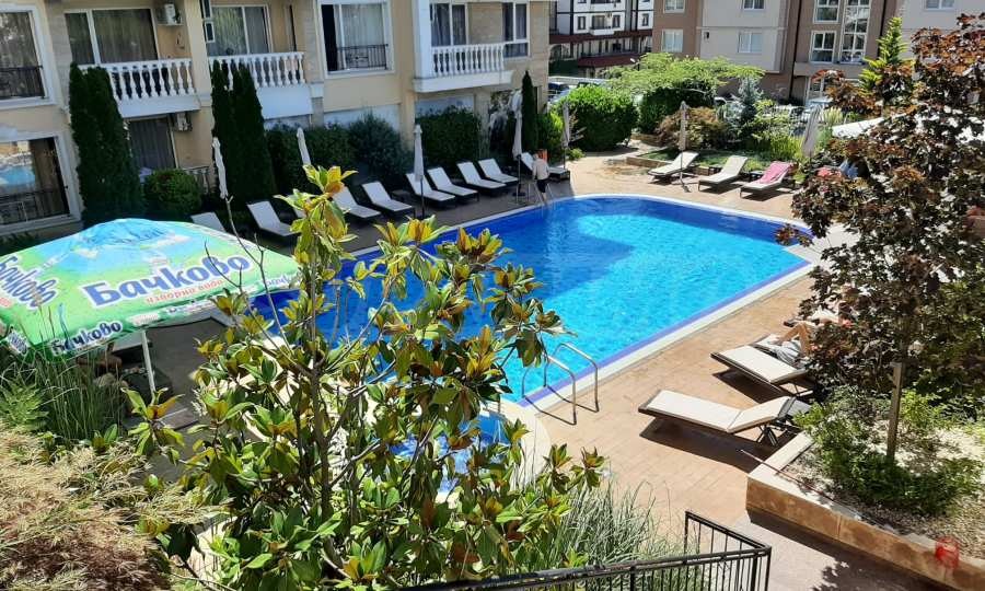 Представяме студио под наем в нов, елегантен комплекс с басейн и СПА-зона, разположен само на 200 м от плажа на Свети Влас.