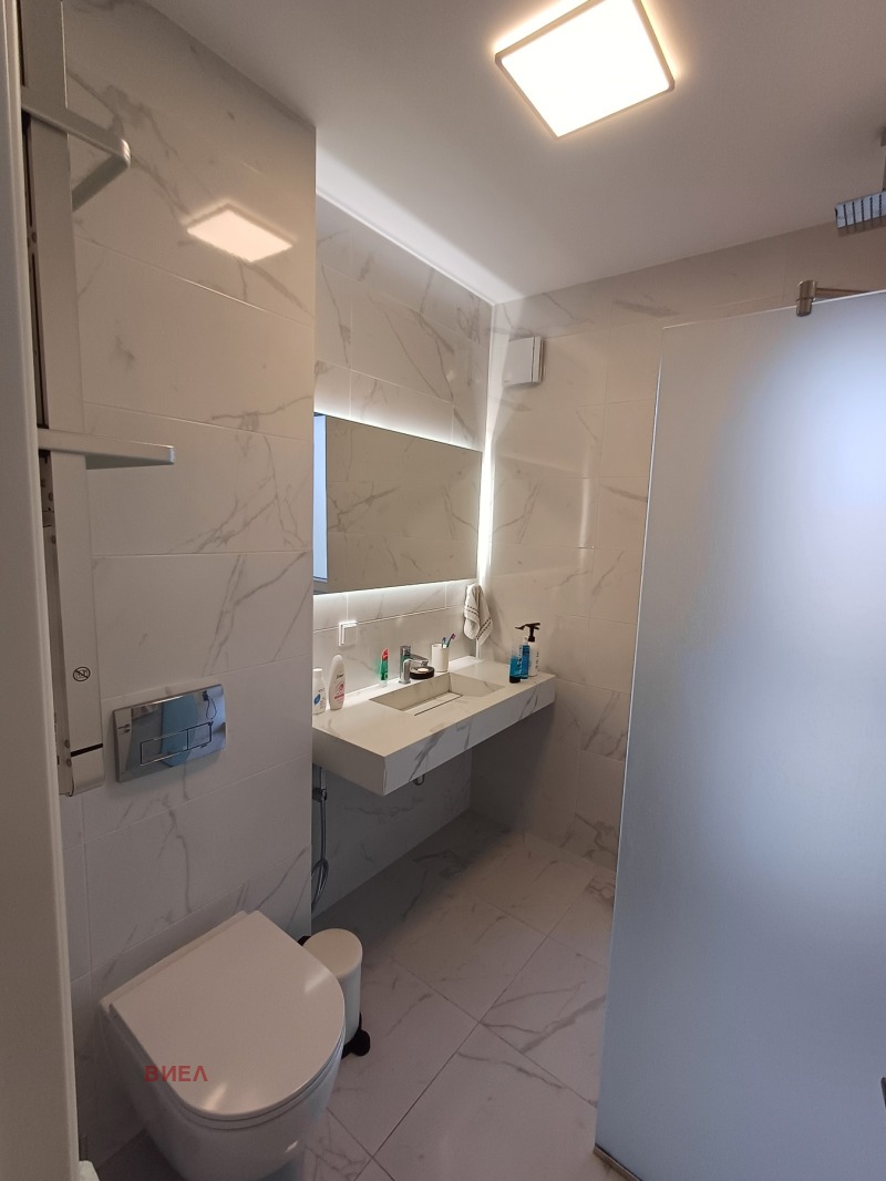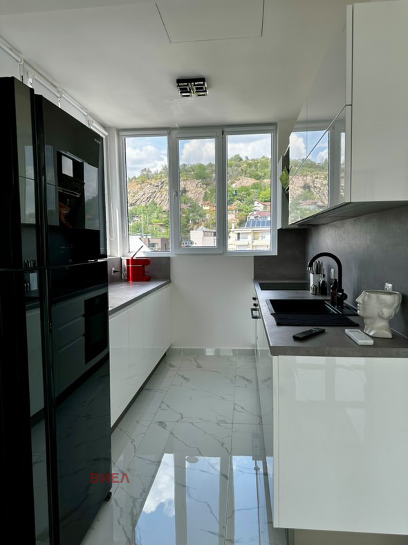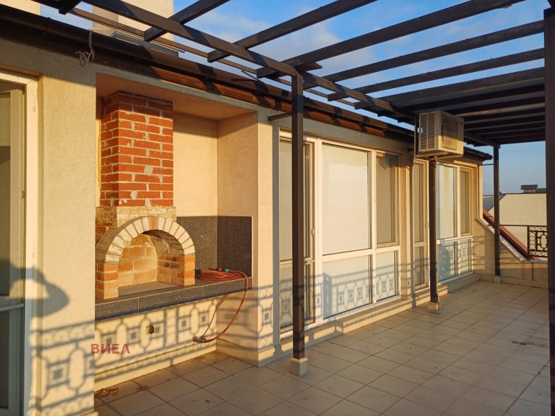 Местоположение: Център. Апартамент със ЗП 121 кв.м. в луксозна сграда срещу ВМИ на етаж 8/8. Самостоятелен на етажа с контрол на достъпа. Разпределение: хол с трапезария и кухненски бокс, две големи спални /едната със собствена гардеробна/, една баня с тоалетна, перално помещение, коридор, прекрасна тераса пред всички стаи с барбекю зона и уникална гледка. Апартаментът е завършен луксозно, с изчистен дизайн. Уредите са висок клас в кухненския бокс, хладилник Хитачи, 65-инчов телевизор, климатици Мицубиши електрик. Сградата е с асансьор и луксозни общи части. Към имота има партерно самостоятелно покрито паркомясто, което е включено в цената. Лице за контакт: Ева Цекова - 0882 761640.