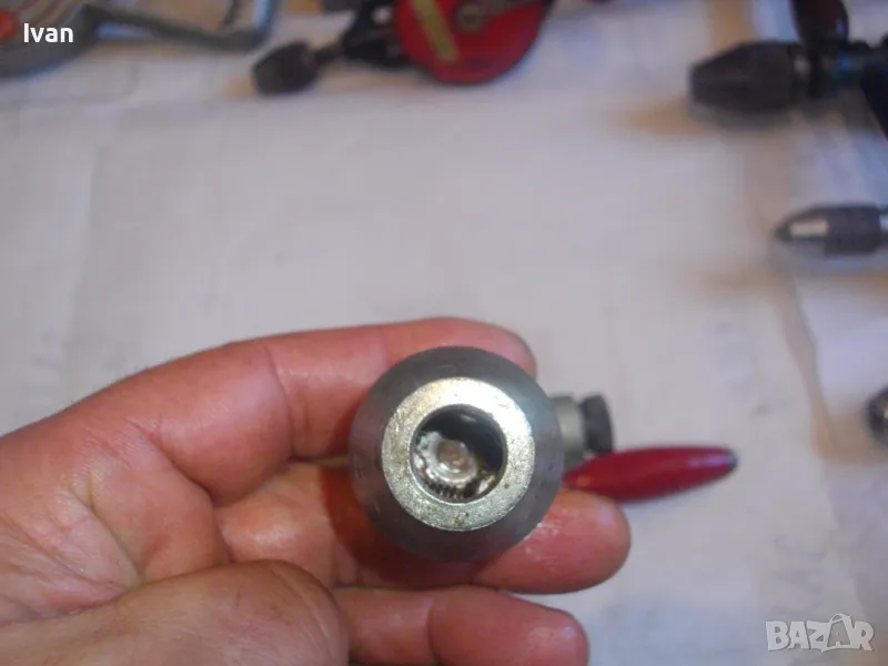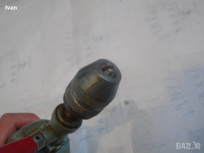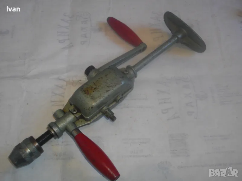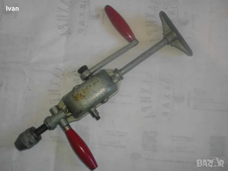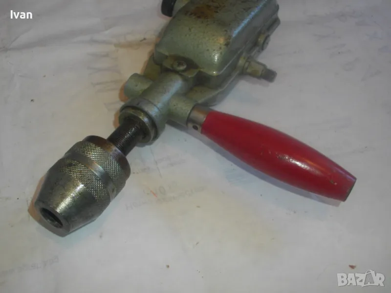 ОПИСАНИЕ на ръчна дрелка-бормашина с опорно рамо - цена 129 лв. Старо качество профи Зап.Германия. Маркировка S10-1. Почти нова, в отлично раоттно състояние. Двускорстна. Масивна, от масивен метал.Масивно опорно метално рамо. Цялостна длжина - 345 мм. Оригинална сива металик боя. Резби от двете страни на корпуса за странични дръжки. Поставена оригинална странична дръжка с дървено покрите без охлузвания по боята. Патронник - масивен метален, голям - захват до 13 мм. Поставена за проба и тест бургия за дърво и метал. Тегло - 1,8 кг. Цена на инструмента 129 лв.