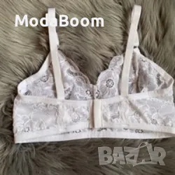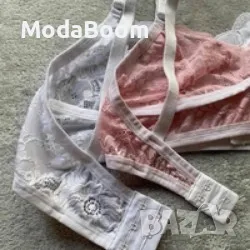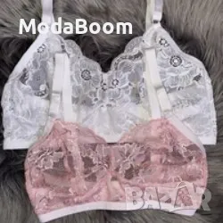 Дантелен сутиен без банел с мека чашка и широка закопчалка с възможност за регулиране. Размери от XS до XXXL.Голям избор от цветове- Бяло, Розово, Светло синьо, Черно, Бордо, Индигово синьо.
