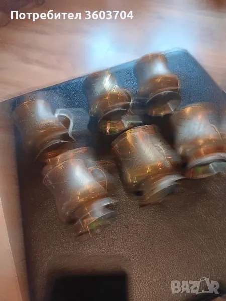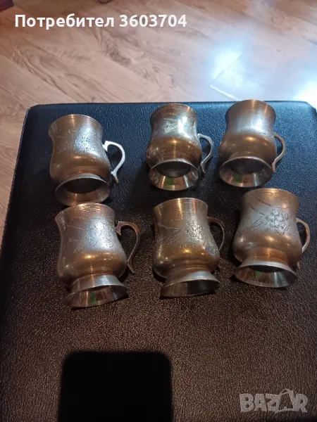 шест стари чаши бокали за вино за чай за много неща могат да станат изработени са от метал основата е бяла отгоре с жълти може би са били позлатени Не зная имат печат който съм снимал колко се вижда Нямам представа един хубав сервиз за дома за колекцията за подарък кой как сметне за Добре благодаря ви за вниманието Разгледайте и другите мои обяви Весела Коледа