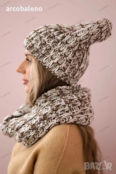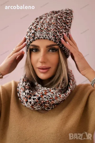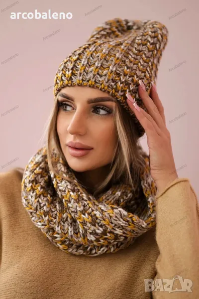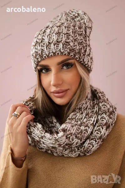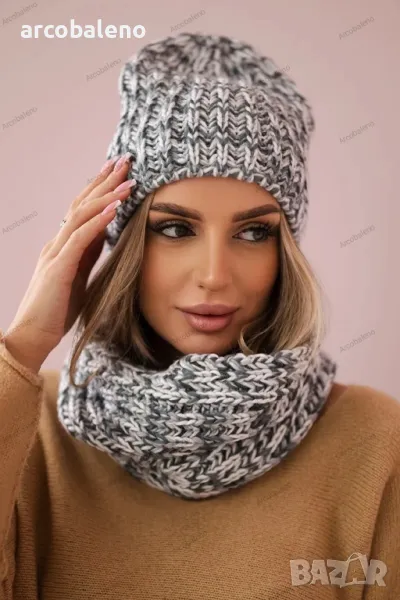 Предлагаме Ви топъл комплект, състоящ се от шапка и качулка. Комплектът се отличава с атрактивен външен вид и солидна изработка. Много красив десен ще направи комплекта модерен и практичен аксесоар за много сезони. Размерът на шапката и капака е универсален.