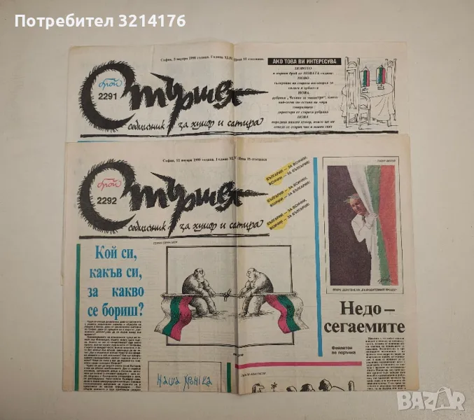Вестник "Стършел". Бр. 2291, 2292 / 1990; Бр. 2628 / 1996 → Обява 48320397