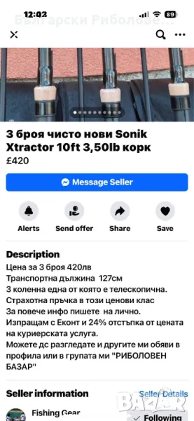 Sonik Vader X RS cork 12 фута -3,25 либри - 110 лв за брой