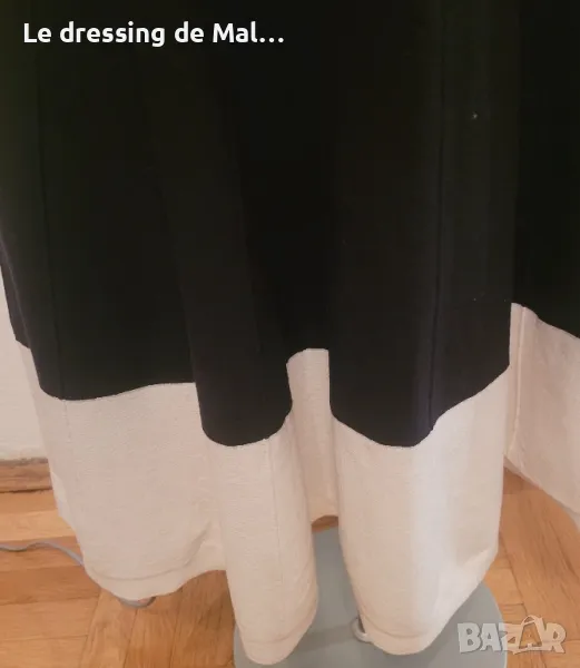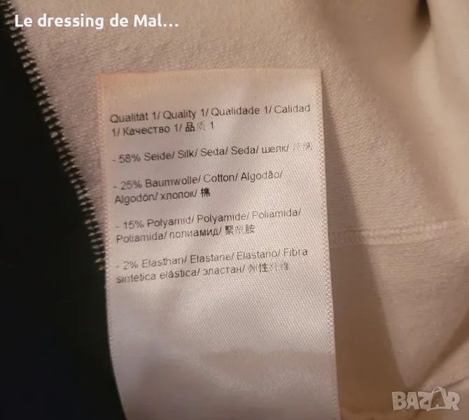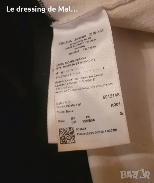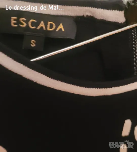 шикозен бранд Escada, комбинация от няколко материи, включително и коприна-58%. Вечната класика-черно и бяло.Разкроена долна част. Цип на гърба.