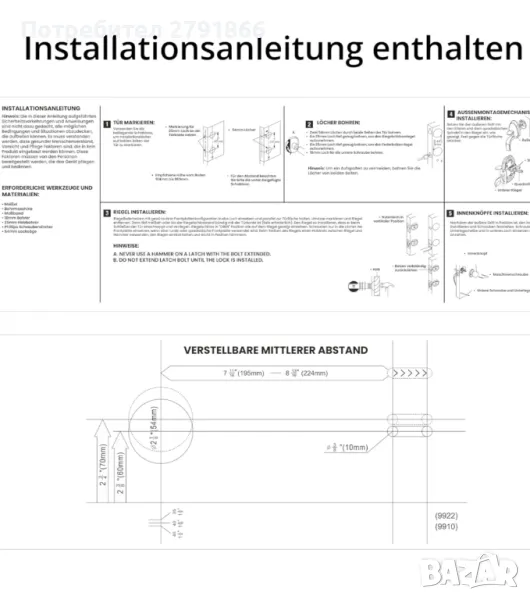 - ЛЕСЕН ЗА МОНТАЖ - Този черен обков за врата на апартамент е предназначен за врати с дебелина 38-45 мм; Комплектът за врата за апартамент има саморегулиращи се отвори за винтове за опростяване на настройката и монтажа, както и 8 x 42 mm и 6 x 44 mm измервателни винтове; включени са инструкции за сглобяване