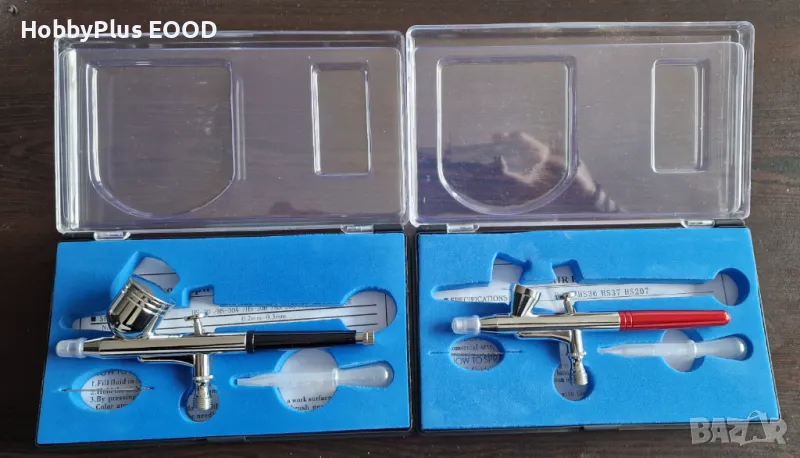 Аерографите са двойно действащи, с гравитачно подаване и вътрешно смесване на боята. Професионален клас изключително подходящи за бюти салоните за направа на маникюр, гримове и т.нт.