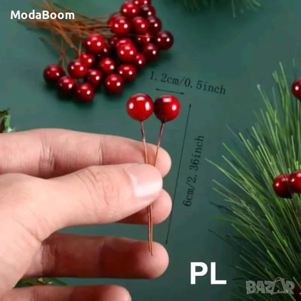 Полиестерни имитационни червени плодови клончета за коледни декорации, украси за елха и празнични аранжировки.