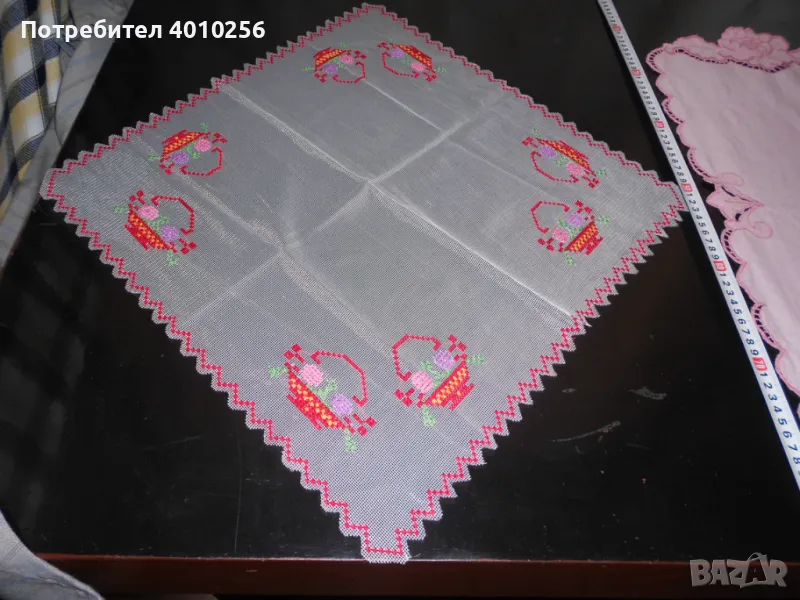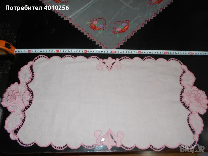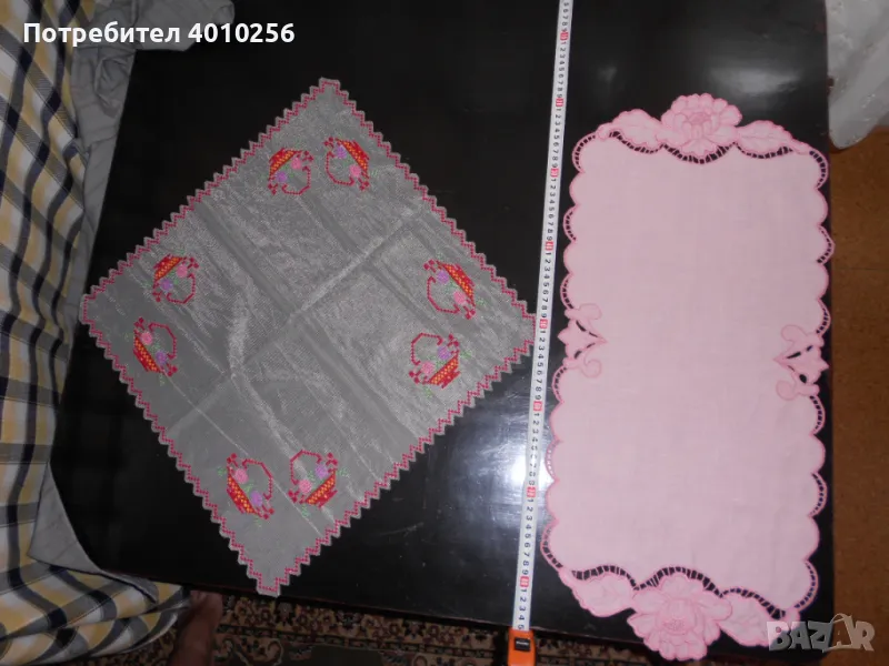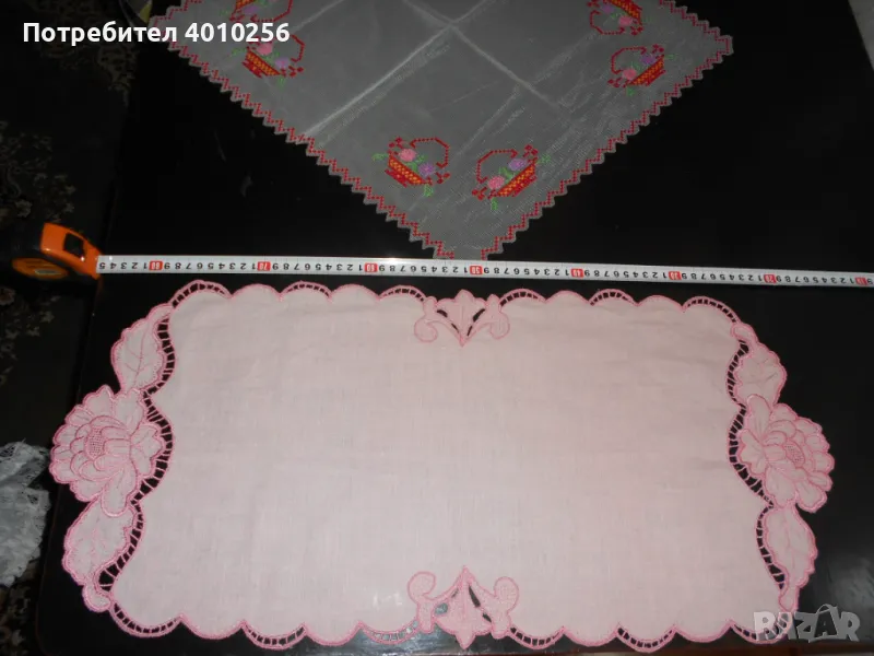 2 БРОЯ НОВИ НЕУПОТРЕБЯВАНИ КАРЕТА С БРОДЕРИЯ. ЕДНОТО Е КВАДРАТНО, С ЦВЕТНА БРОДЕРИЯ. ДРУГОТО Е ЕЛИПСОВИДНО НА ПАМУЧНА ОСНОВА С РОЗОВ НЮАНС БРОДЕРИЯ.