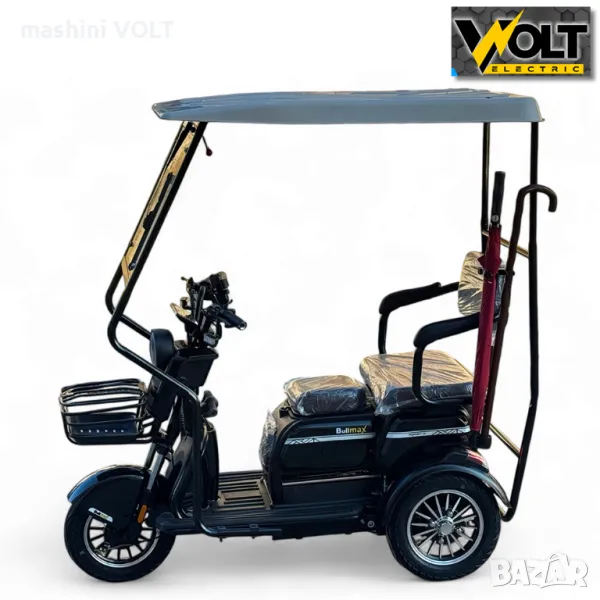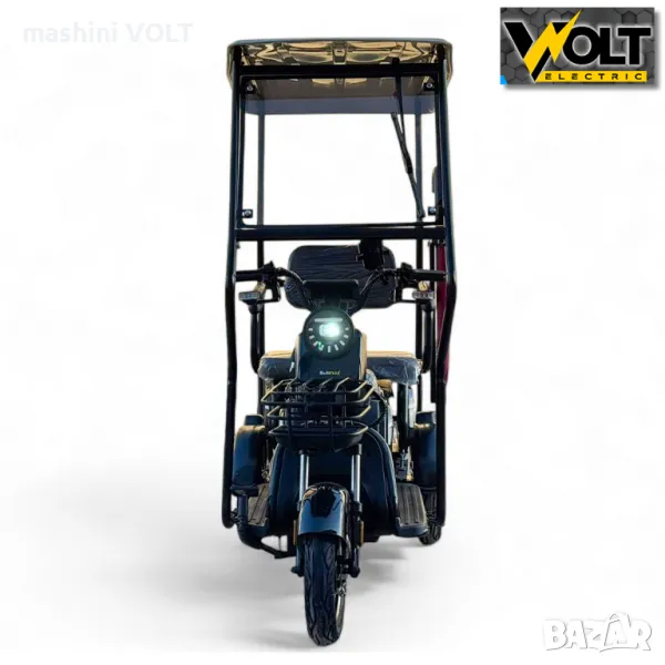 Електрическа триколка с покривна конструкция и страници, подходяща за употреба през всички сезони. Покривната конструкция се разглабя и сваля. Страниците са лесни за монтаж и демонтаж и позволяват употребата при дъжд, сняг и вятър. Със задно разположения си двигател с диференциал и петте батерии с голям капацитет, тази триколка без усилия изкачва нагорнища и има пробег от 50+ километра. Товароносимостта и е 250 кг., а максималната скорост- 35 км/ч. Снабдена е с 2 ръчни и крачна спирачка, голям цифров дисплей и аларма. Подарък при закупуване- стойка със чадър и бастун, за употреба и от по- възрастни или трудноподвижни хора. Има тристепенен ограничител на скоростта, задна скорост, както и плавен старт.
