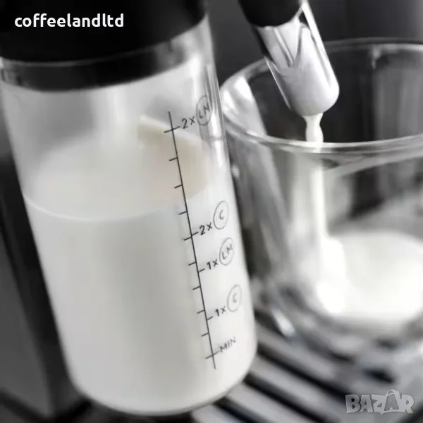 Включва функция за автоматично почистване с едно докосване и кана за мляко, подходяща за съдомиялна машина.