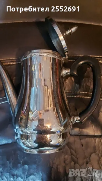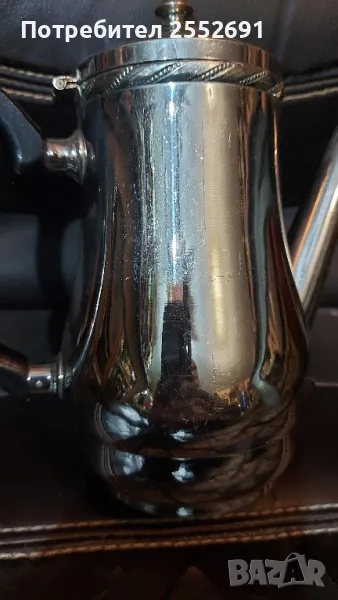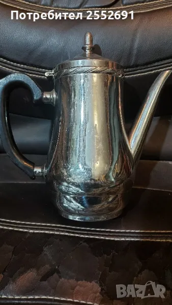 Метална кана с дървена дръжка и капаче. Височина-21см.