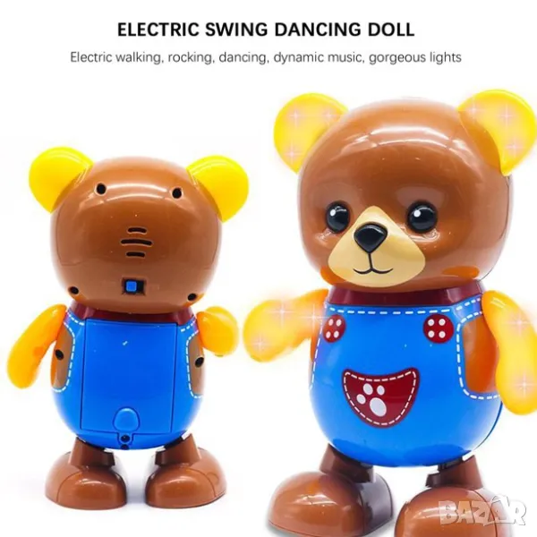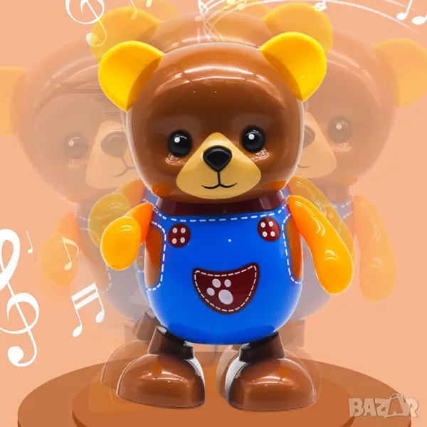 Истинско забавление за Вашето дете! С танцуващото музикално мече детето Ви ще играе и ще се забавлява. Танцуващото мече има светлинни ефекти, музика, светещи уши и лапички. Движи се танцува и свети в преливащи цветове под звуците на различни мелодии.