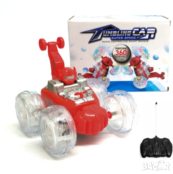 Лудата кола има разнообразни движения като спираловидни завъртания на 360 градуса, невероятно преобръщане, супер колела, музика и 3D светлини. Комплектът съдържа: кола и дистанционно управление