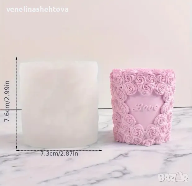 "Love" сърце рози Силиконов молд форма Свети Валентин свещи гипс сапун → Обява 48325111
