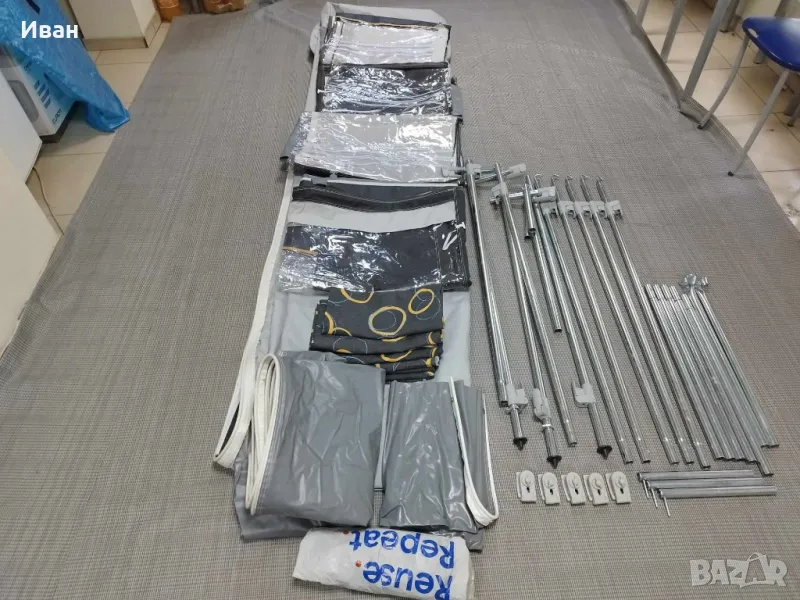 В наличност всички размери форселти, за каравани, кемпери, бусове и ванове. Сафари рум за кемпери. Чисто нови и слабо употребявани. Анекси и инер тенти за форселти. Тенти. Самонадуваеми къмпинг матраци. Мотомувъри за каравани. Покривала за каравани и кемпери. Дишащи килими за форселти и палатки. Къмпинг столове. Шезлонги. Кабели и адаптори за ел. захранване. Водни помпи. Контейнери за чиста и отпадна вода. Къмпинг аксесоари.