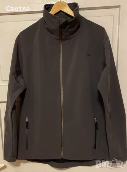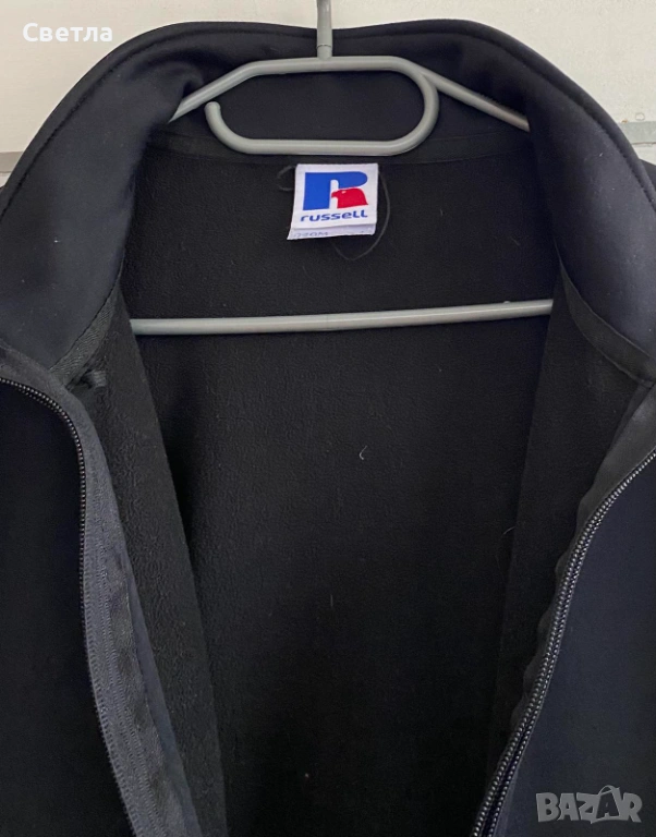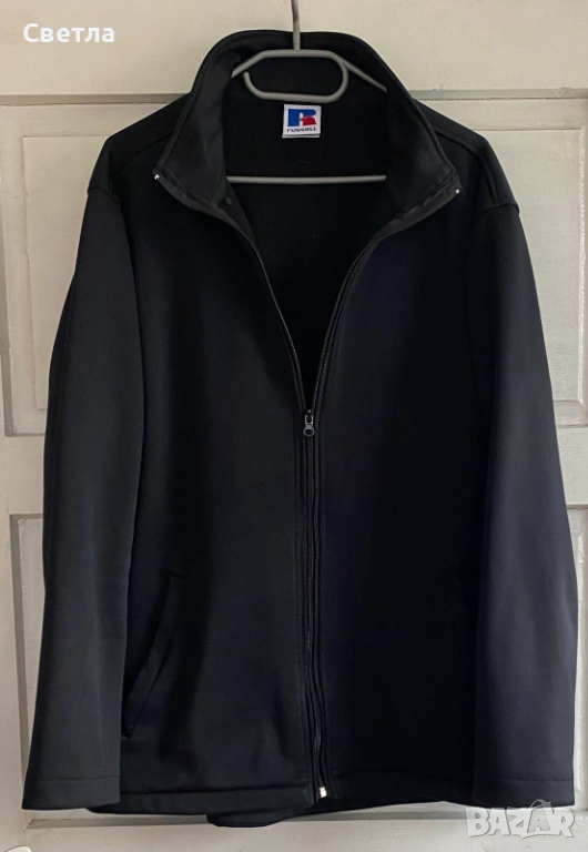 7. Суитчър/Яке RusseLL,пролет/есен,водоустойчиво,топло,качулка.18 лв. По етикет е L размер, но е уголемено и леко еластично, в см.ГО 115-120см, Дълж.75-77см. Цвят черен.