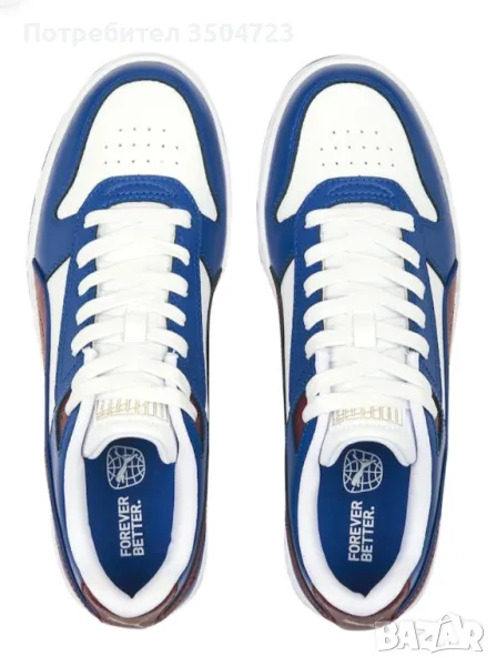 Размер на маратонките 40.5(26 см). Страхотни мъжки спортни обувки Puma, изработени от висококачествени материали. Тези страхотни спортни обувки са част от кампанията Forever Better, на която приоритет е намаляването на негативният екологичен отпечатък върху планетата ни. Моделът е с перфорирана предна част , изчистени цветни ленти. Ключовите зони на крака са подсилени за по-голяма стабилност. Обувките притежават мека подплата, която ще държи краката Ви топли през есенните и зимните дни. В стелката е добавена Better Foam - това е специалната пяна заема формата на стъпалото и осигурява едновременно чувство на мекота и осезателен контрол върху движението. Съчетават се перфектно с дънки или спортно долнище.