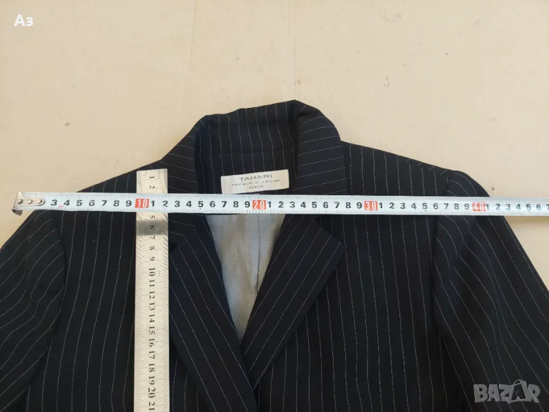 Продавам дамско сако марка TAHARI, подходящ за дами с ръст около 150 - 160см, тегло около 55 - 63кг. Всички размери са снимани и показани. Моля, разгледайте снимките внимателно.