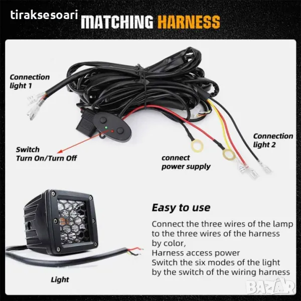 Цвят на осветление: БЯЛ 6000K-6500K + ОРАНЖЕВ (Аварийна, Сигнална Светлина)