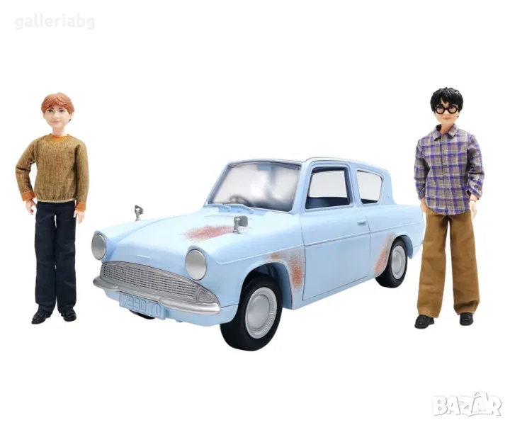 Пътувайте до Хогуортс с две вдъхновени от филма кукли Хари Потър и тяхната невероятна летяща кола! Феновете и колекционерите могат да преживеят отново емблематичен филмов момент с този колекционерски комплект, включващ куклата Хари Потър, куклата Рон Уизли и реплика на емблематичния автомобил Ford Anglia, включващ вярна на филма скулптура и реалистични детайли, като метална решетка и джанти и ръжда. Идеална за показване или игра, летящата кола разполага с отварящи се врати и седалки за двете кукли. Поставете Хари и Рон вътре, за да се повозите - но бъдете внимателни, функцията за невидимост е развалена!