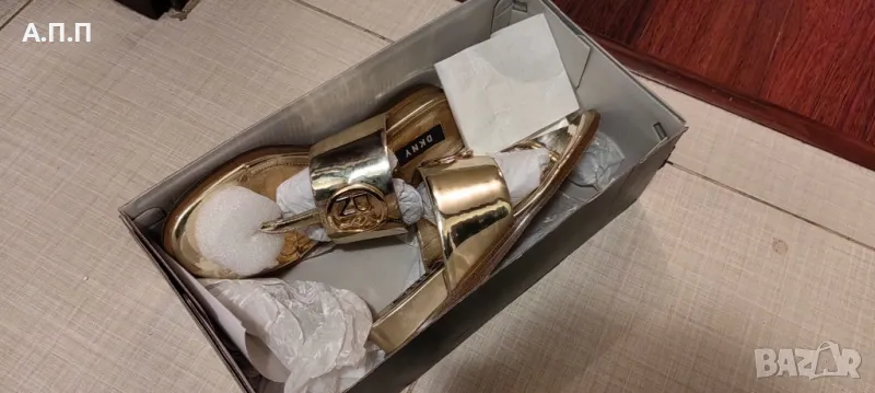 Златни сандали на DKNY, обувани са 2-3 пъти. Закупени от About you за 239 лв.