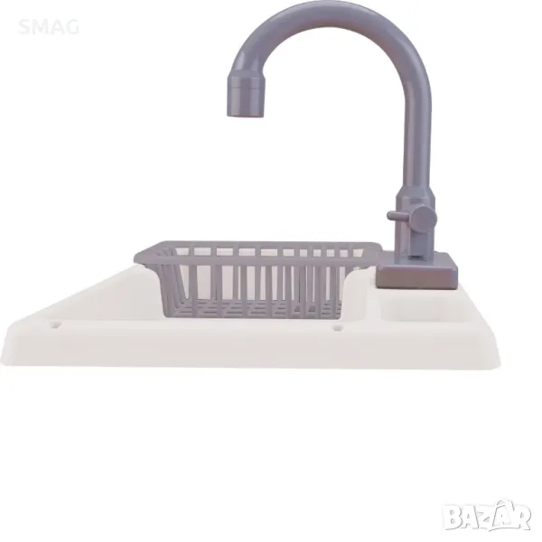 Играчка пластмасова мивка с възможност за въртене на крана, бутон за включване/изключване и възможност за пускане на вода. Има чинии, чаши, вилици и ножове. Работи с 2 батерии АА (включени в комплекта).