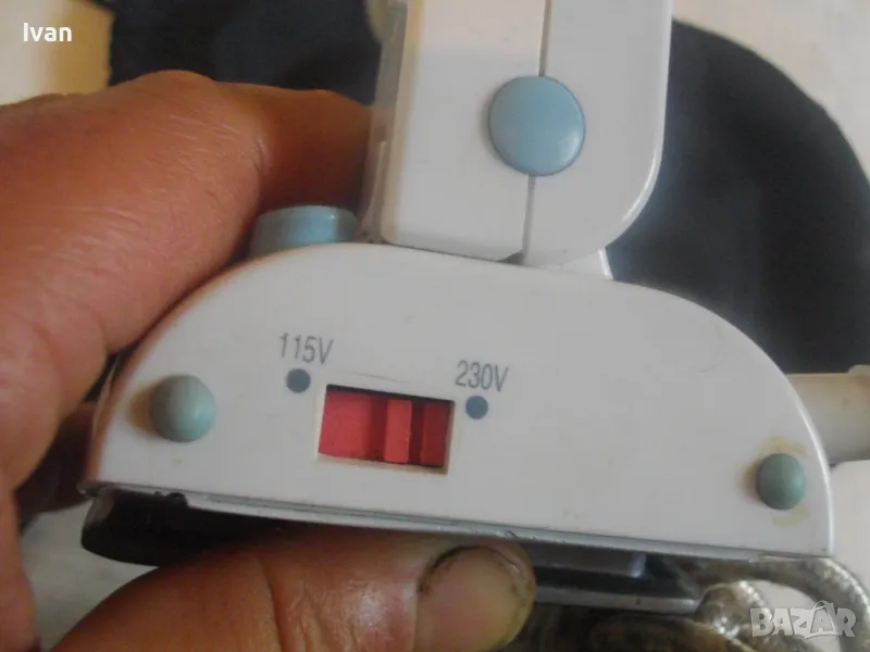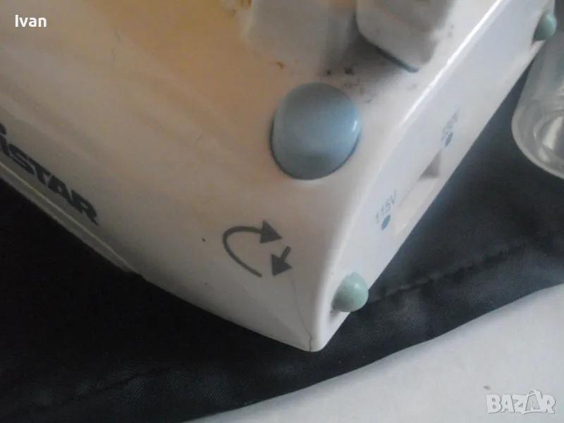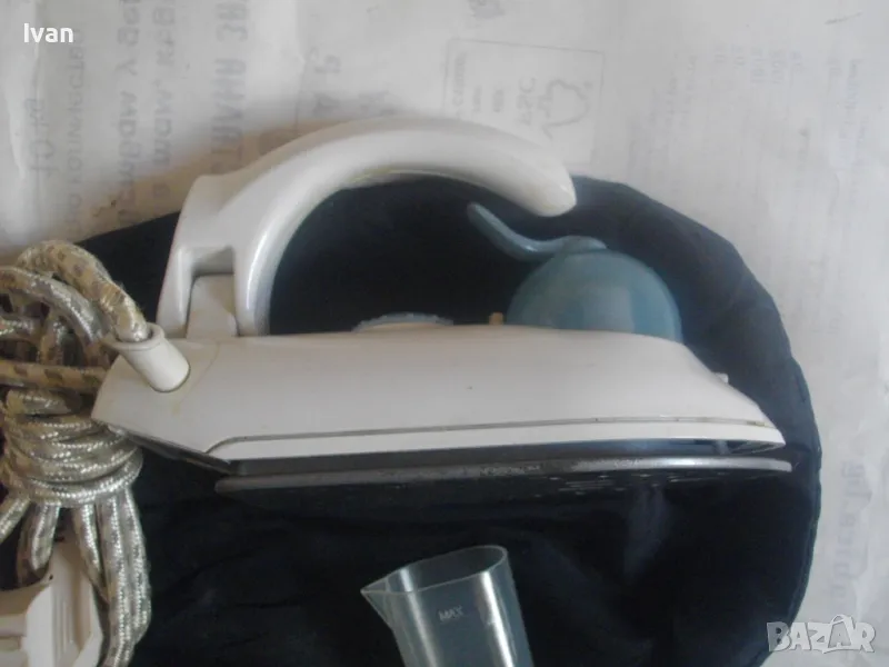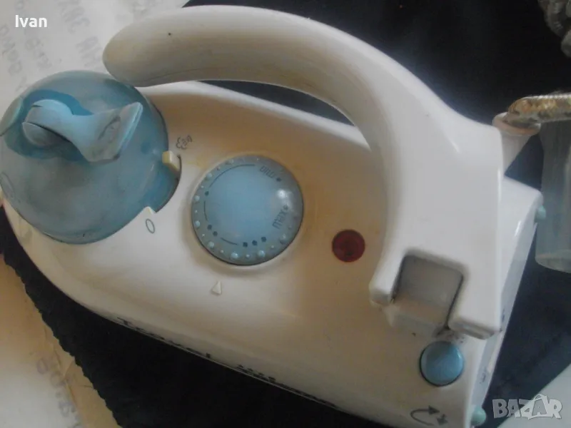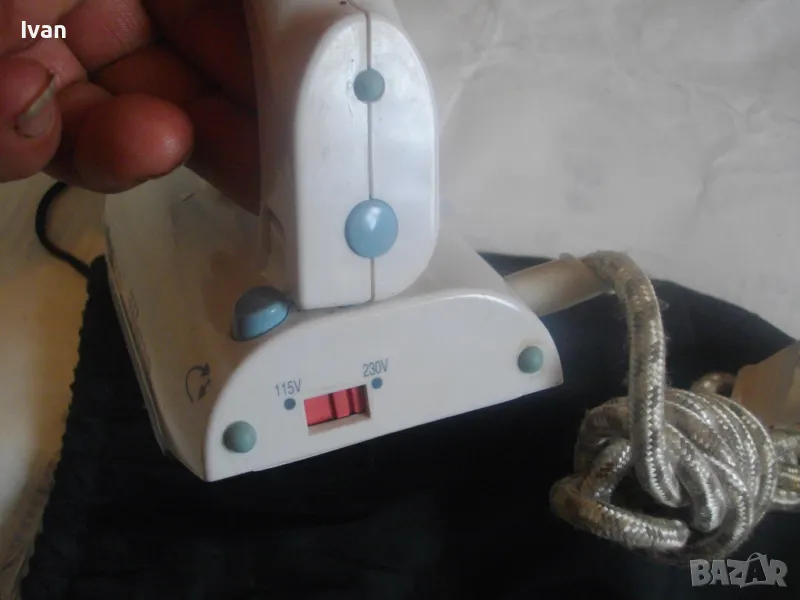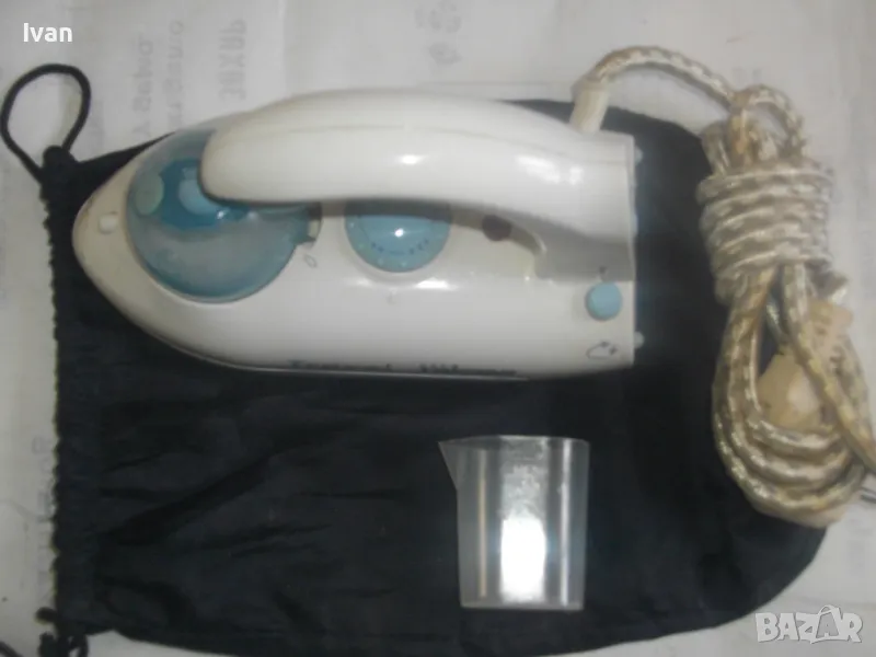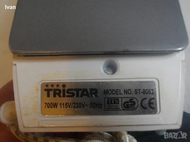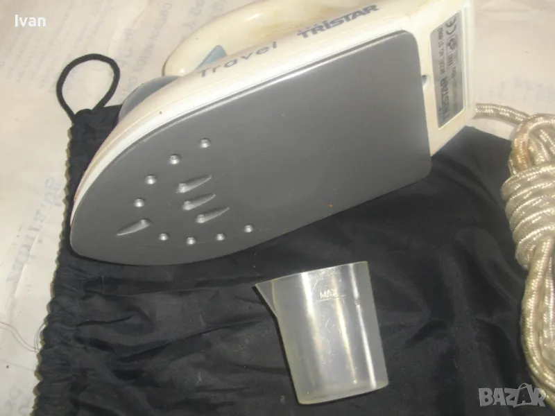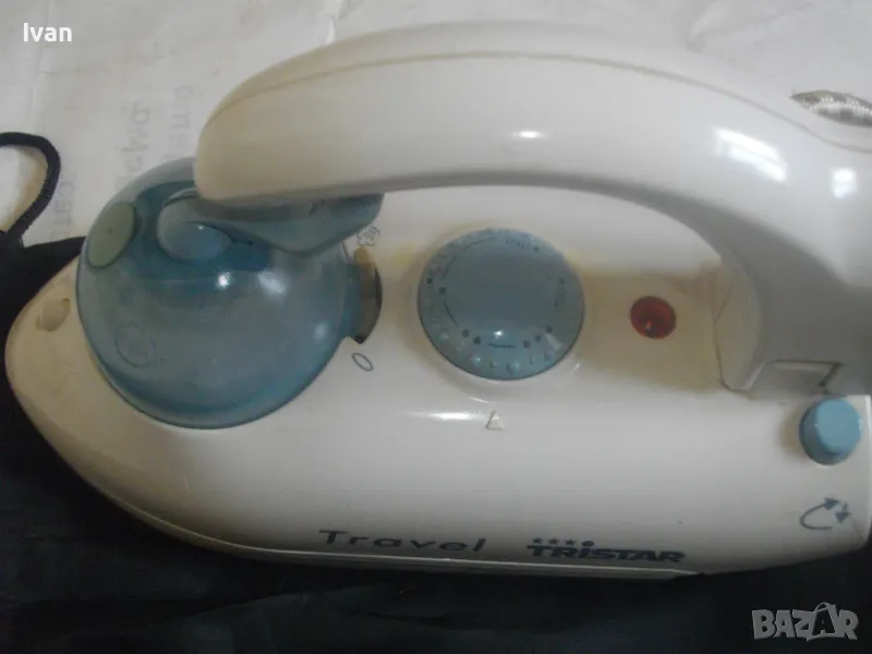 Съвсем малка мини ютия,тип туристическа.Уреда е ползван,но е в отлично техническо състояние.Марка и модел-Tristar ST-8062.Размер на термо плочата за гладене-85 мм ширина,и 150 мм.Мощност на плочата-700 вата.Размери на ютията-дължина-185 мм,ширина-85 мм.Кабела е с платнено обримчване.Масивна здрава,твърда пластмасова удобна дръжка-която се снема,поляга на една страна.Височина на ютията с дръжката-120 мм.Покритие на плочата-незалепващо тефлон.Захранващо напрежение-220-240 волта и 110-115 волта-има превключвател отзад 110-230 волта-50 херца.Уреда е в оригиналната си платова торба под форма на несесер,с връзка.Налична е чашката за вода.Ютията е тип парна.Има 5 степени на нагряване.Наличие на светлинна индикация,при включване и затопляне.Не е упомената страна производител.Ютията е почти нова,работи много добре,със запазен външен вид.