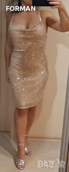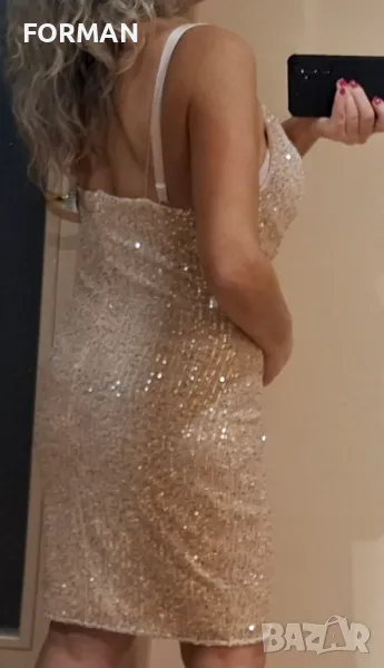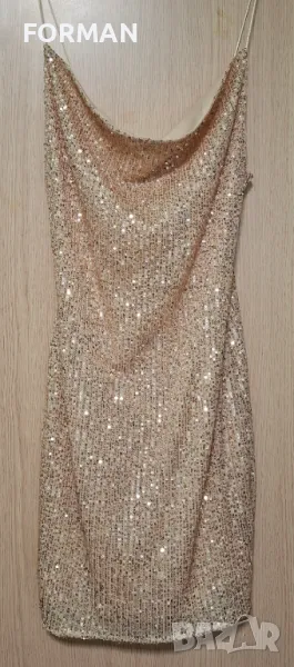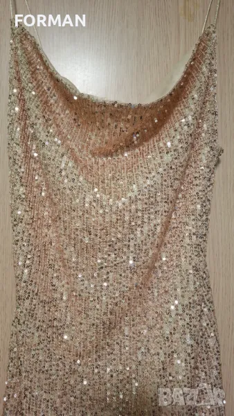 Рокля със златисти пайети и дълбоко деколте → Обява 48329684