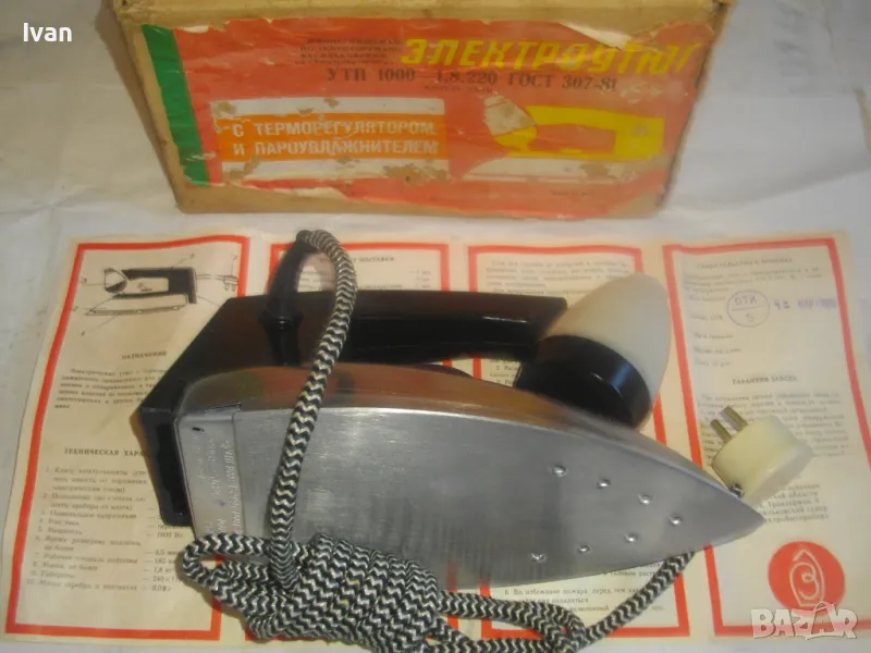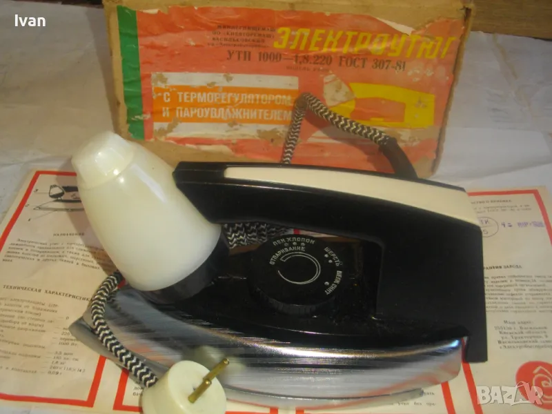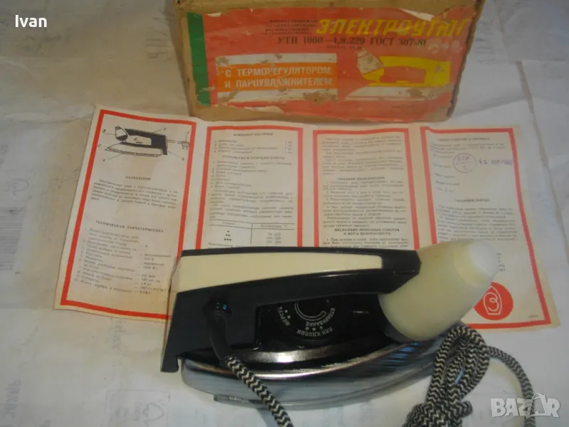 НОВА РУСКА СССР ЕЛЕКТРИЧЕСКА ЮТИЯ С ТЕРМОРЕГУЛАТОР И ПАРОУВЛАЖНИТЕЛ "ЕЛЕКТРОУТЮГ" УТП 1000 С ПАСПОРТ